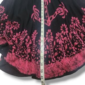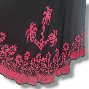This midi dress features a striking black and pink design, perfect for everyday casual wear. The intricate floral patterns add a touch of sophistication.