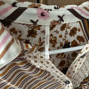 Free People Tan and Brown Graphic Button Down Shirt