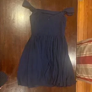 Elegant navy blue midi dress by Vera Wang. Features a ruched bodice and flowing skirt. Perfect for any occasion.