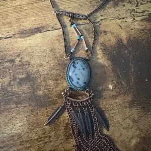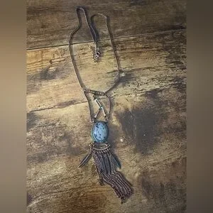 Embrace a bohemian vibe with this stunning copper necklace featuring turquoise accents. Perfect for adding a touch of elegance to any outfit.
