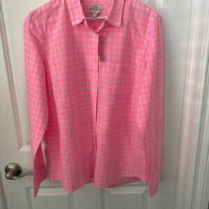 NWT J. Crew Neon Pink Gingham Button Down Shirt