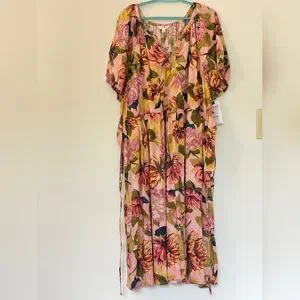🌺 Embrace vibrant color and all-day comfort in this Terra & Sky pink and yellow floral sundress. With breezy dolman sleeves and a flowy maxi length, this dress is perfect for sunny days, vacations, or casual brunches.