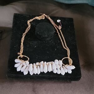 This elegant necklace features a stunning combination of gold and white, perfect for adding a touch of sophistication to any outfit. The delicate design is ideal for both casual and formal occasions.