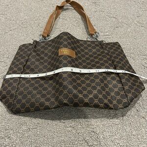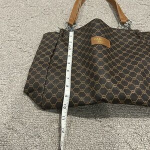 NWT Elegant Brown & Tan Checkered Women's Bag With Silver Tone Hardware 16x10