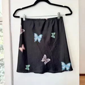 Lisa Says Gah Michelle Butterfly Mini Skirt Satin Black Medium