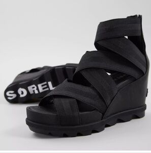 Sorel Black Joanie II Strappy Wedge Sandals Size 8 EUC