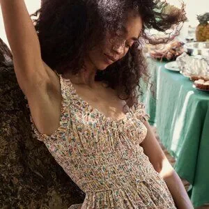 New Doen Emmaretta Floral Cotton Midi-Dress, Wilder Clover Floral, Size S