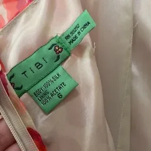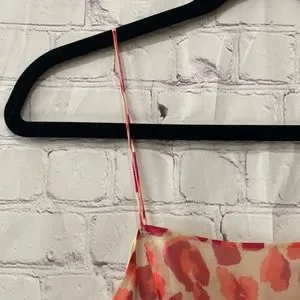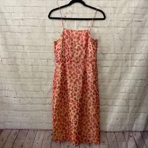Tibi 100% Silk Dainty Midi Dress Red Nude Animal Print Size 6 Spaghetti Strap