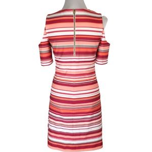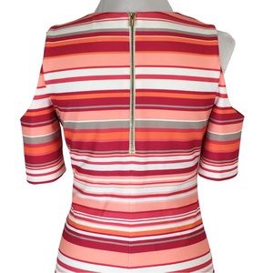 Calvin Klein HIBISCUS MULTI Pinks, Orange and white Cold Shoulder Striped A-line Midi Mini Dress size 6