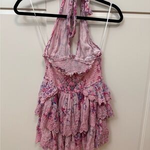 LoveShackFancy Pink Halter Ruched Mini Dress