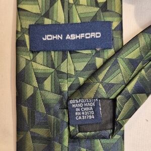 John Ashford 100% Polyester Green and Black Geometric Mens Neck Tie