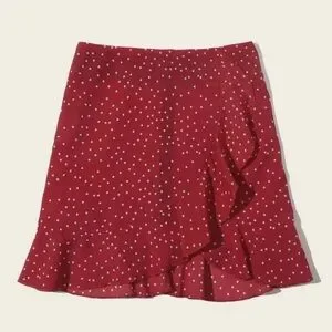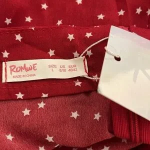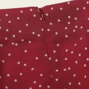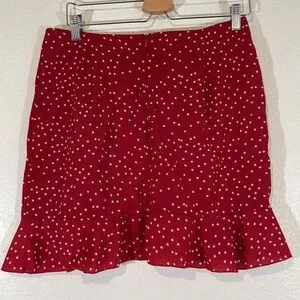 ROMWE Star Allover Print Ruffle Trim Skirt Red & White Back Zipper Large New