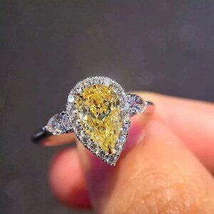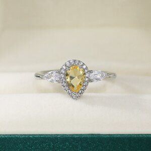 😍925 Silver Yellow Water Drop Romantic Crystal Diamond Ring for Women, K778