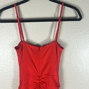 Some surface level marks towards bottom of dress shown in photos, a little hard to see since the material is a little reflective and a few small runs