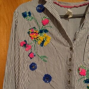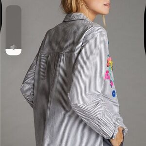 Anthropologie Maeve Striped Floral Sequin Shirt - Size 4
