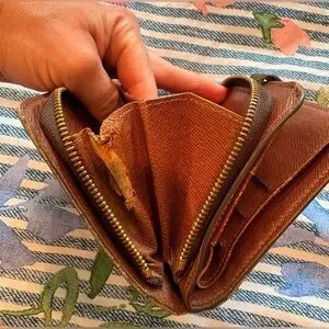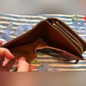 Don’t miss out on this gorgeous Authentic LV vintage wallet! Pre- loved condition, but lots of life left! Plenty of room for cards and necessities. Most callouts are interior and not noticeable from the outside, in my opinion. One of the compartments in the zip up section is unattached on one side. The snaps are snappy, and the leather has been professionally cleaned and conditioned. Zipper zippy.