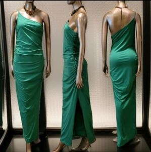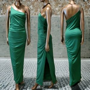 NWT Sexy Green One Shoulder Ruched Sides Split Thigh Maxi Dress Sz M