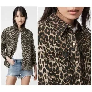 All Saints Leopard Print Button Down Shirt