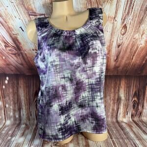 Chico's Sz 2 US 12 Large Purple Gray Scoop Neck Sleeveless Tank Top Shirt Blouse