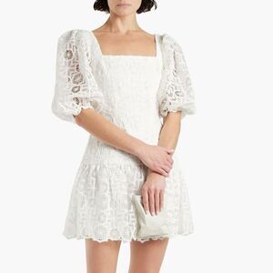 ML Monique Lhuillier Puff Sleeve Lace Dress in White, Size 2 New with Tag, SOLD OUT