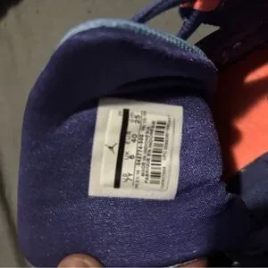 These Jordan sneakers boast a bold purple and orange color scheme, perfect for making a statement. Crafted with a mesh and synthetic material blend, they offer breathability and comfort. The chunky silhouette and angular design provide excellent support, ideal for both style and performance.