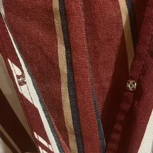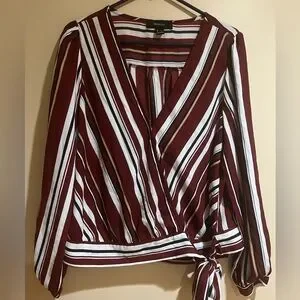 Maroon Striped Blouse can be worn for any occasion and can be paired with different colored pants. This blouse has a small button and a knot tie on the side of the shirt. It’s in good condition and was only worn once.