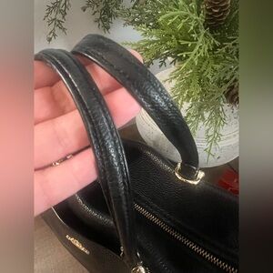 This Coach Fulton Satchel is crafted in a soft pebble grain leather. The interior has a zippered pocket and a slip pocket to carry your smaller essentials. The exterior has a slip pocket on the front to hold your phone, keys, etc. The sides of the bag have a magnetic closure which can be released, allowing for more interior space. The removable adjustable strap gives you the option of wearing it as a crossbody.