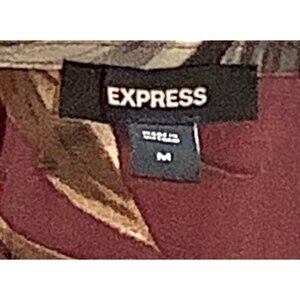 Express Size M Floral Burgundy Satin Midi Dress Cowl Neck Hi-Lo Beachy Whimsy