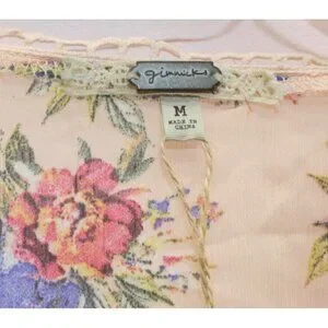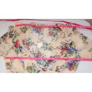 BKE NWT Womens Medium Top Floral Sheer Peach Balloon Sleeve Ruffles Cottage Core