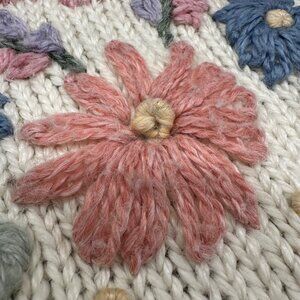 Vintage Sweater 90s Floral Embroidered Gray Cream Large Maggie Lawrence Sport