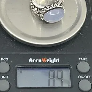 Vintage Sterling Silver Thai Ring with Blue Chalcedony – Size 4.75, 8.9g