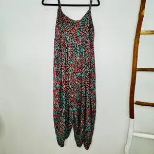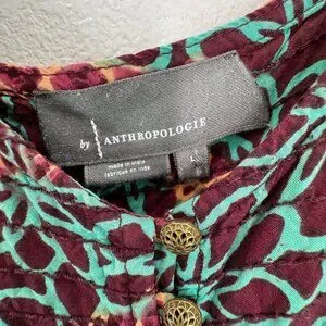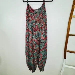 Anthropologie Women's Printed Smocked Button Front Lounge Jumpsuit SZ LG