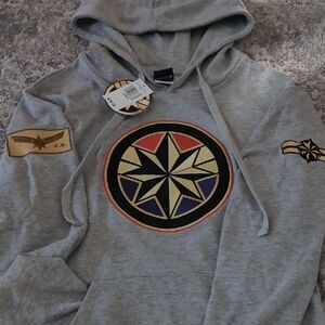 Stylish gray hoodie with a bold star design. Ideal for Marvel enthusiasts.