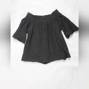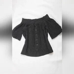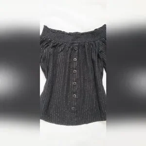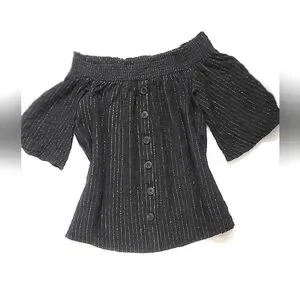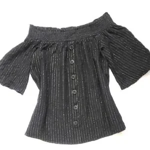 NWOT!Off The Shoulder Button Front Metallic Striped Women's Boho Chic Top Small