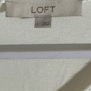 This cream blouse from LOFT features a relaxed, boxy fit with 3/4 sleeves, offering a comfortable and stylish look. The soft fabric and subtle pattern make it a versatile addition to any wardrobe.