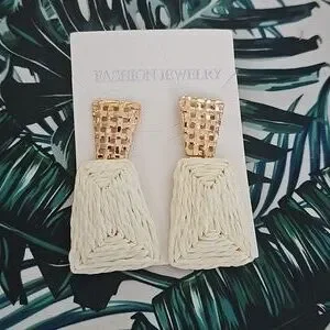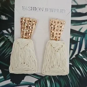 These elegant earrings feature a stunning combination of gold and cream, perfect for any occasion. The woven design adds a unique touch to your style.
