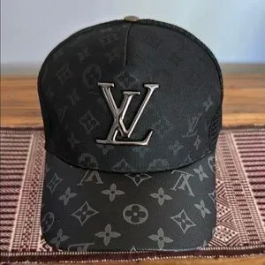 Designer style baseball cap, snap back with mesh sides. Metallic logo, new.