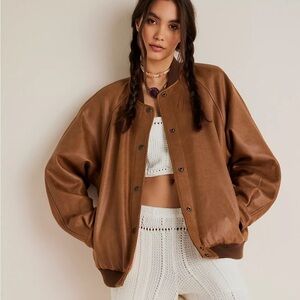 NWT We The Free Wild Rose Vegan Suede Bomber Jacket