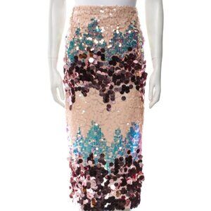 The Farah Rose Sequins Set from Bronx & Banco brings a romantic bohemian spirit. Designed in Australia and whipped up from a silk blend, the multi-color sleeveless top features a billowing feathered hemline that compliments the sequined embellished midi-skirt. Effortlessly style with a crystal-embellished clutch bag and shimmering stilettos.