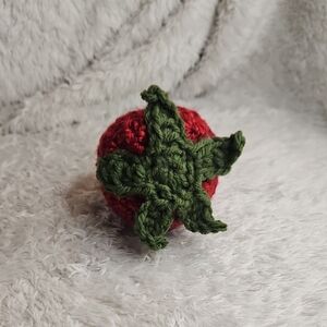 Adorable handmade crochet strawberry plush. Great for a pop of color to your desk. Filled with plush poly fill, could be used as a stress ball. He's so cute with big eyes and cheeky smile!