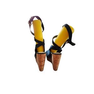 Shoedazzle Platform Wedge Sandals, Blue Denim Rivets High Heels. This blue wedge high heeled sandal Size 12