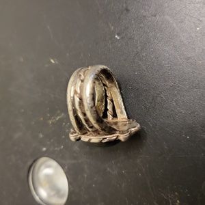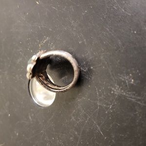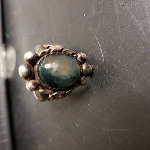 Sterling Silver Moss Agate Hand Crafted Rustic Ring signed ELF Craft Si…