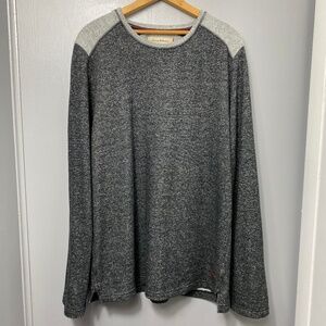 Tommy Bahama Dark Heathered Gray with Light Gray Trim Fuzzy Fleece Pullover Crew Sweater. Super Soft. Excellent Condition. No Flaws Size Large. Chest-23" Length-31"
