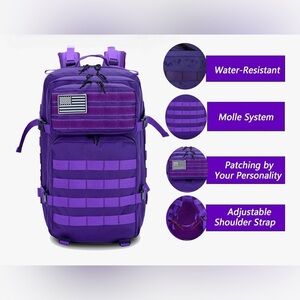 Large Capacity & Organized Storage - 45L purple military backpack with 180° clamshell opening,17-inch padded laptop sleeve and 5 compartments (2 front pockets,2 main compartments,mesh pocket). Perfect for 3-day trips,gym gear or emergency supplies,size 19.7in x 11.8in x 11.8in