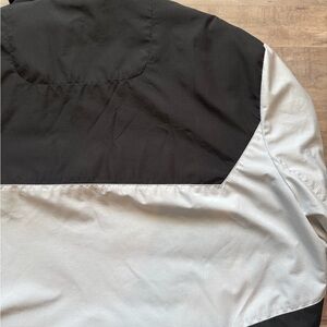 Stay warm and stylish with this black and white 3 in 1 puffer jacket. It features a sleek black quilted inner lining and a durable windbreaker outer shell. Perfect for cold weather, this puffer jacket combines fashion and function to keep you cozy and on-trend. Pop the windbreaker out and you’re ready for spring!