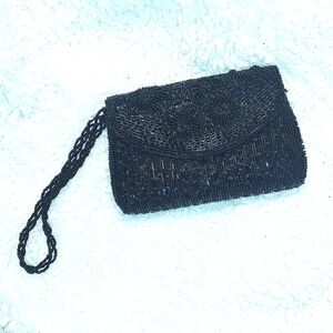 BIJOUX TERNER Black Beaded Wristlet Clutch with Snap Closure