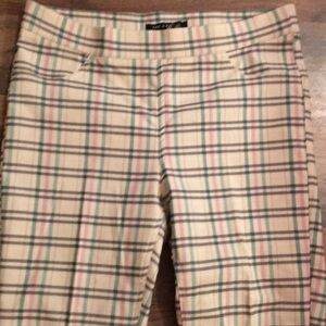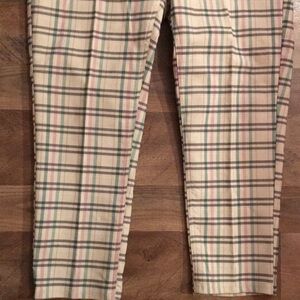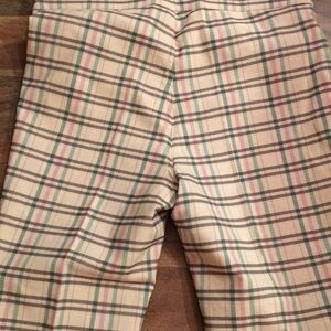 Adorable plaid grid patterned pants/pull on trousers with a mix of pastels - pink / green / blue/ tan /brown