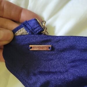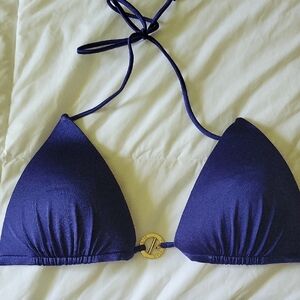 Gorgeous Victoria's Secret royal blue bikini. The triangle top with adjustable straps and standard bikini cut bottom offer a timeless and versatile look. Crafted from smooth, stretchy fabric, this swimwear ensures comfort and style for any beach or poolside occasion. Good condition. Theres a tiny snag on the bottoms in the last picture, barely noticeable. Both size M