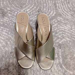 Sole Society Gold Mules with Crisscross Straps