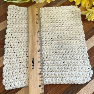 Thick, soft and cushy wash cloths are hand crocheted from 100% cotton yarn.